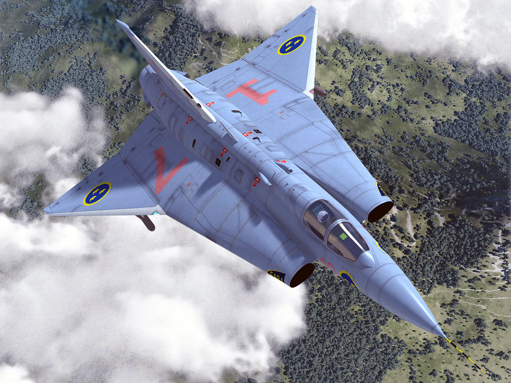 ミラージュ2000HBです。世界各国空軍に輸出されている中の一つ、インド空軍向けモデルです。無論、実際にはこんな罰当たりな「仏陀の目」は描かれていません。背景は久々に実写ですが、こうして実写の雲を背景に使ってみると、CG雲の表現力の精進への未熟さを感じます。